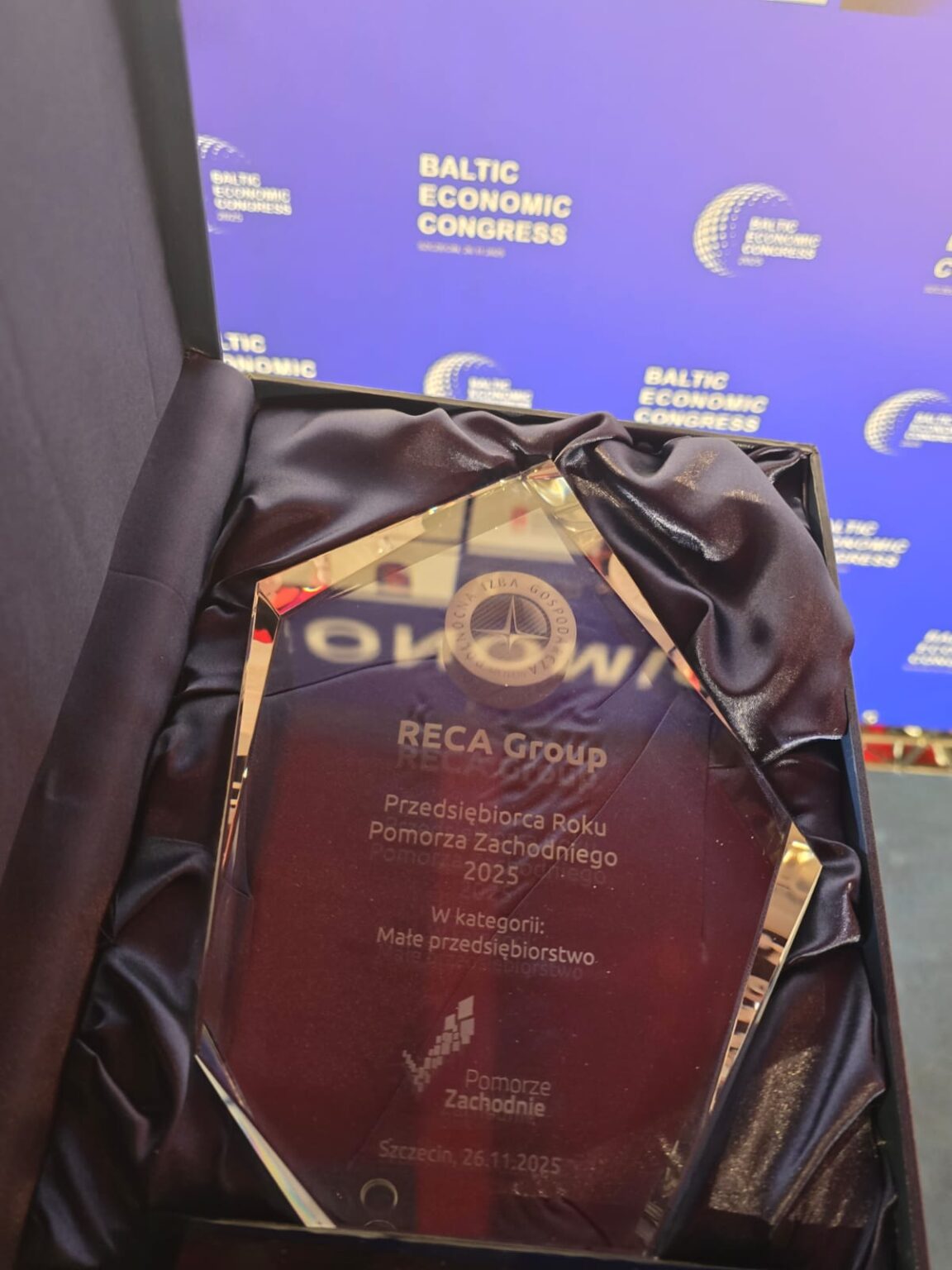 Am Abend fand die Finalgala des Wettbewerbs „Unternehmer des Jahres Westpommern 2025“ statt, während der die RECA Group die Auszeichnung in der Kategorie „Kleines Unternehmen“ erhielt.